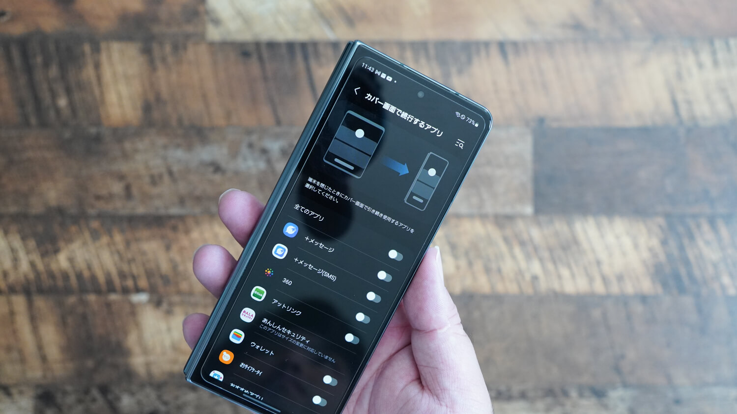 Galaxyのほうにはサブディスプレイとメインディスプレイで異なるホーム画面を設定できたり先ほどの話とも重複しますがメインディスプレイからサブディスプレイの連動性もあります。