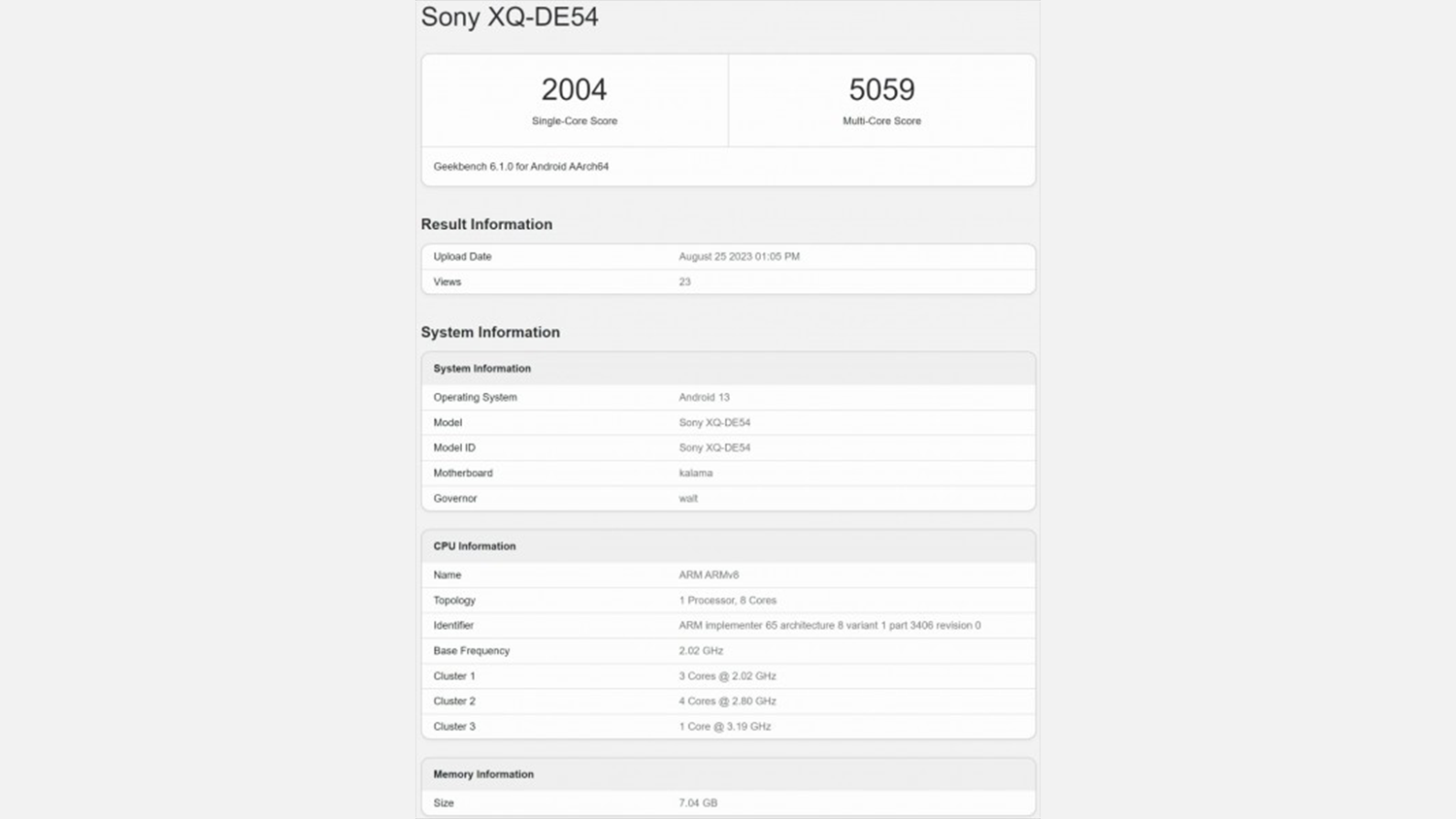 「Sony XQ-DE54」はXperia 5Ⅴのモデル番号と言われており、今回のベンチマークから確認できることとしてAndroid13を標準搭載していること。そしてスコアやコア数にクロック数からもSnapdragon 8 Gen 2を搭載していること。