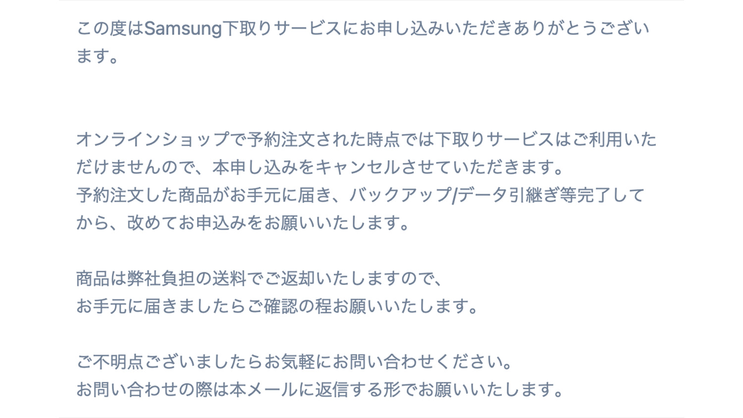 ただ結局のところ予約商品に対して下取りが出来ないとキャンセルされた形になります。ちなみに下取りサービスを申し込む際にGalaxy Watch 6 classicの予約番号を入力。
