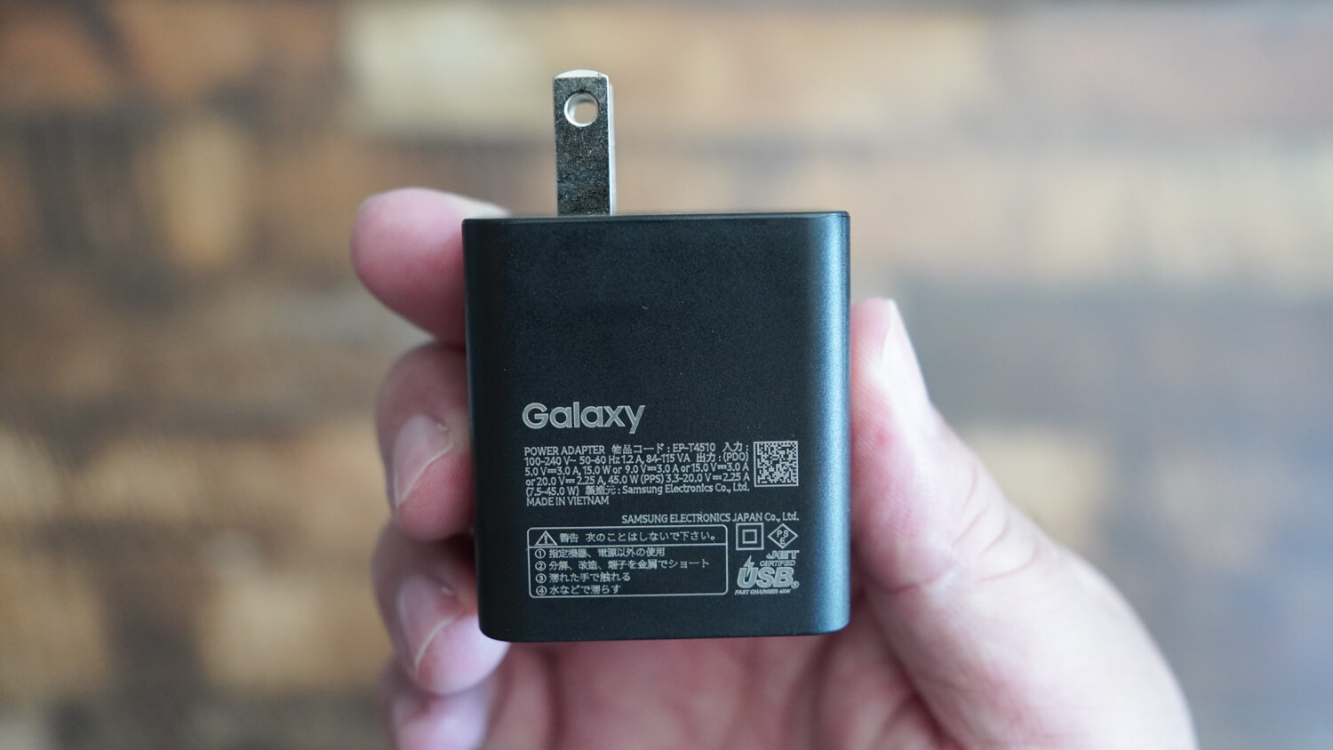 電池持ちが悪いからこそ充電速度が重要になってくるので折角購入するなら純正が分かりやすい。Samsungは急速充電にかなり消極的なので45Wを持っていれば当面は対応できると思います。