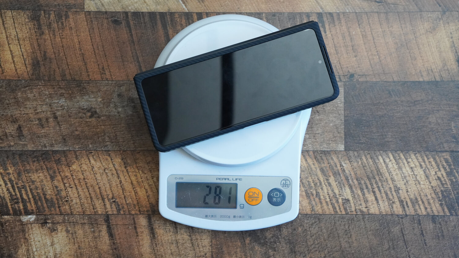 そして先ほどご紹介したSpigenのガラスフィルム込みで本体に装着して計測してみたところ207gとなっており6.7インチの大型スマホがアクセサリー込みでこの重さなら軽い方です。