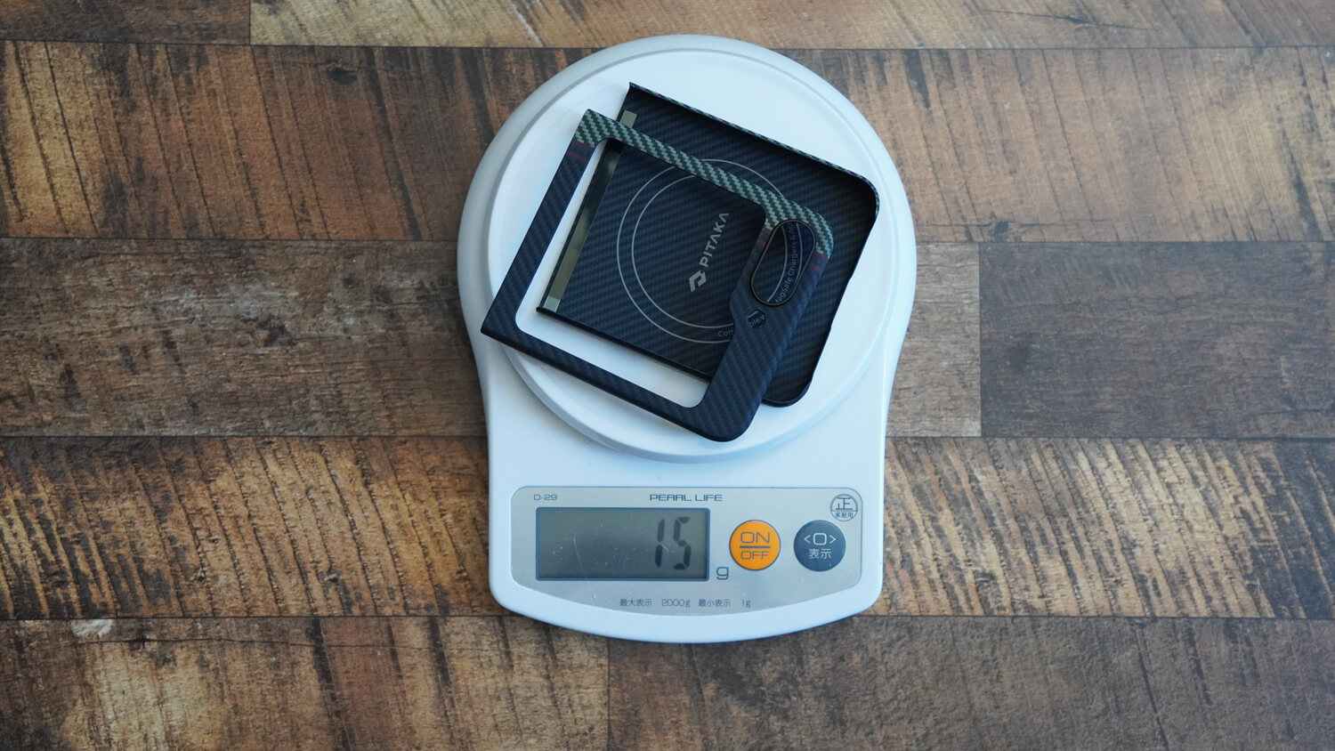 ケースのみで重さを測ってみたところ15gと表示されて実際に持ってもかなり軽く感じます。