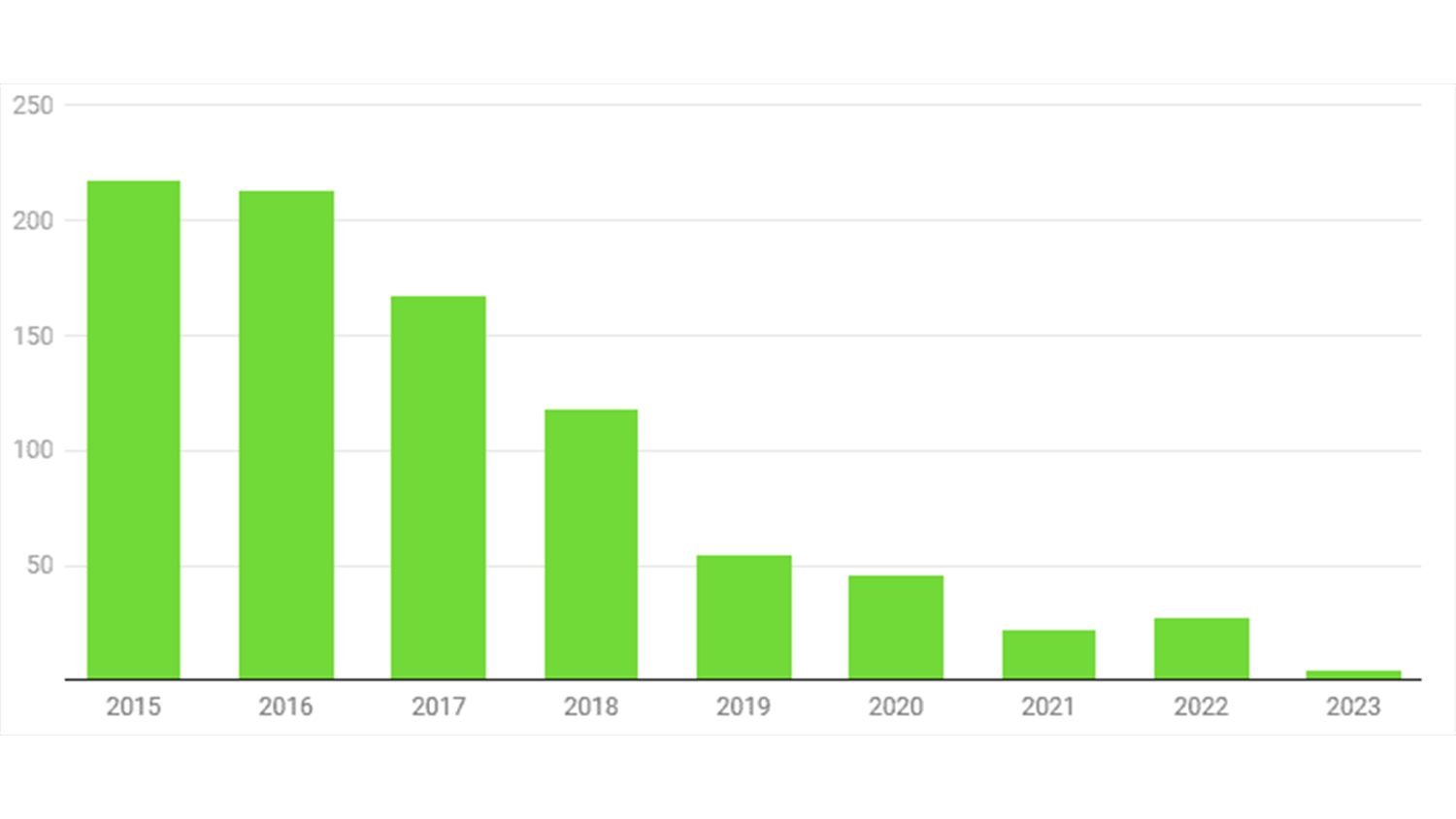 今年はまだあるので今後増える可能性がありますがここ10年で最も少ない年になる可能性。