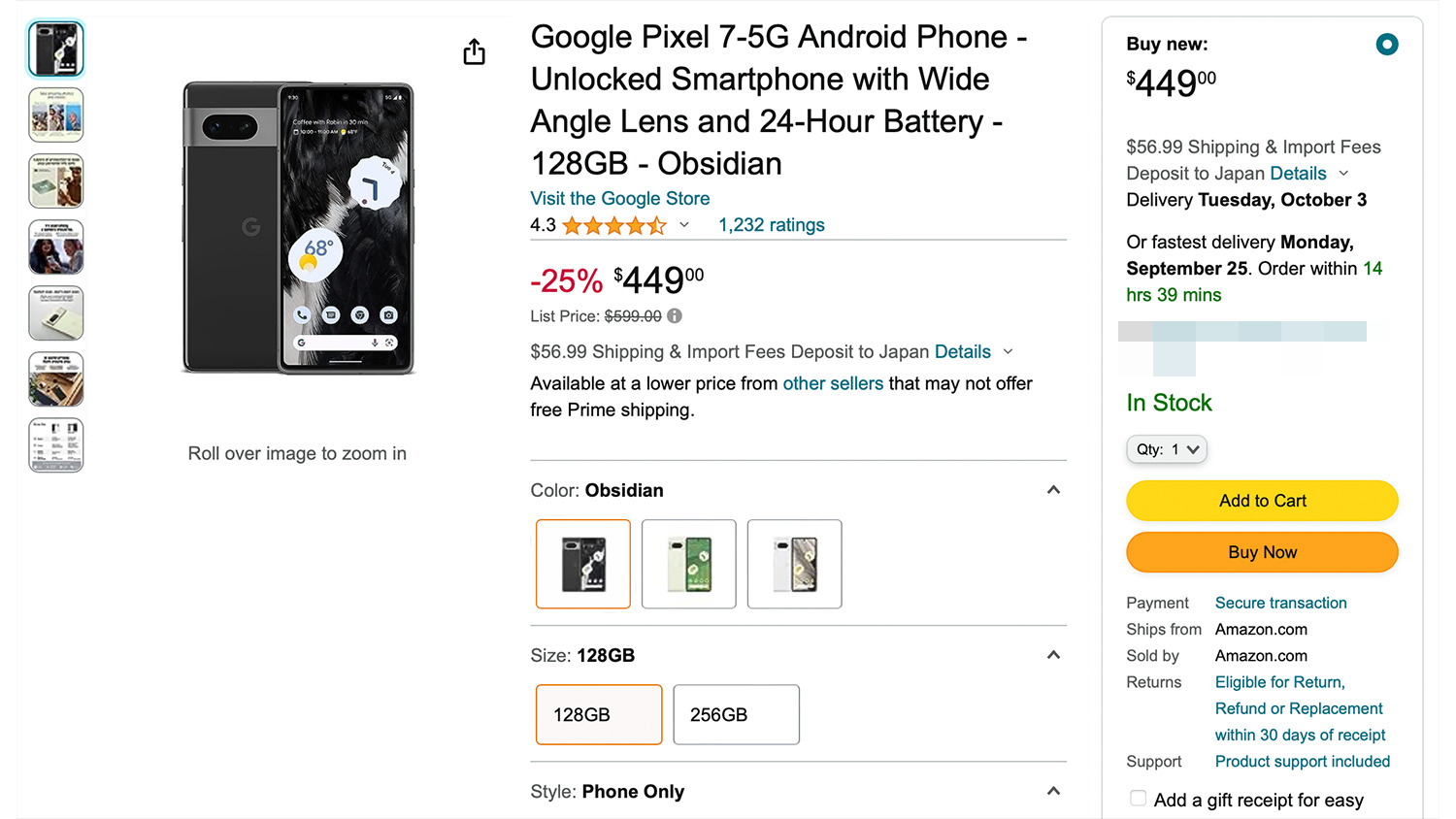 まず定価が$899であるPixel 7 Proですが$649に価格改定が行われていることが判明。つまり$250の値下げとなっており米Amazon史上最低価格を更新したことになります。ちなみに256GB/512GBの両方も$250の値引きとなっており非常に購入しやすい価格に。