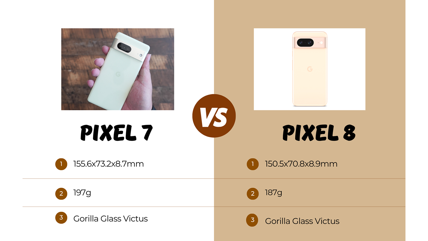 ディスプレイ輝度が驚異的な進化のため電池持ちと上手くバランスをとってほしいところです。先ほどの話とも重複しますがPixel 8は前モデルと同様にGorilla Glass Victusを採用。