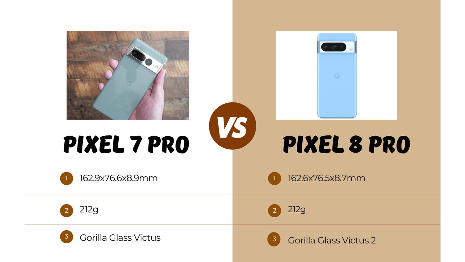 次に最上位モデルであるPixel 8 Proの筐体サイズを確認すると意外にも僅かに小型しています。Pixel 8 ProではEdgeディスプレイからフラットディスプレイに変更されているため本体の横幅が僅かに増す可能性がありましたが今回の情報通りであれば1mm近くスリム化。