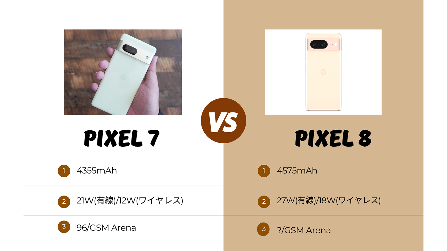 なので現行モデルと一緒ということになりますがPixel 7aやPixel 7も一括りなので電池持ちが改善したか悪化したのか判断することは出来ず実際に使わないと分からないです。