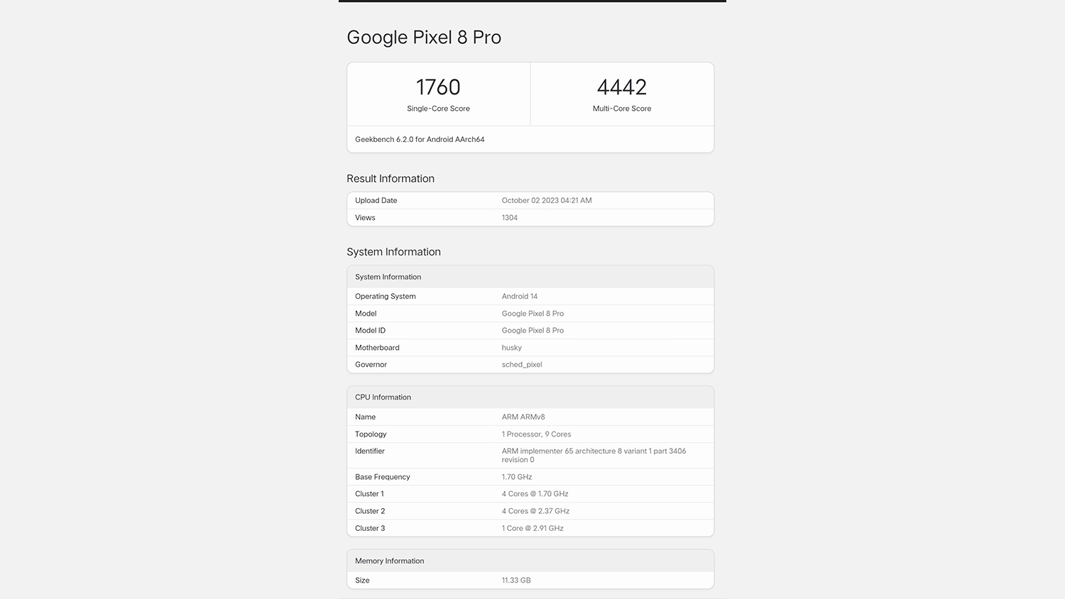 Google Pixel 8 Pro Husky appears on Geekbench, Pixel 8 Pro’s Tensor G3 chipset scores slightly below Snapdragon 8+ Gen 1.