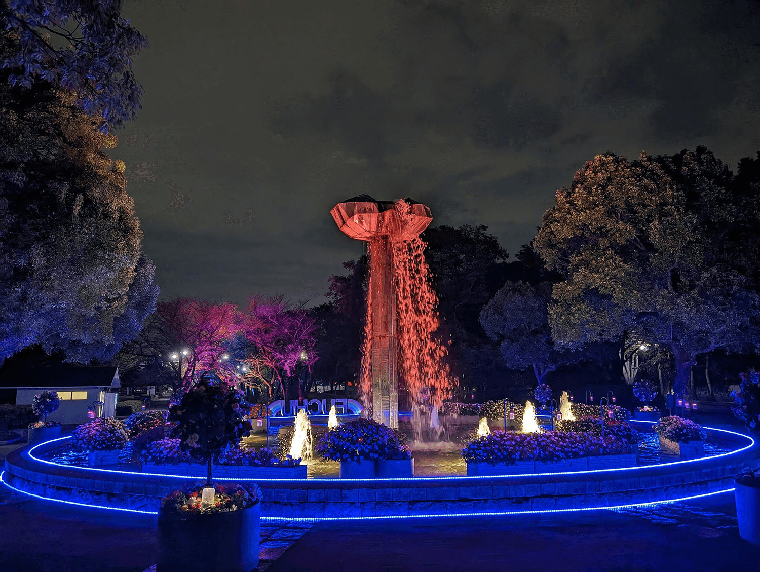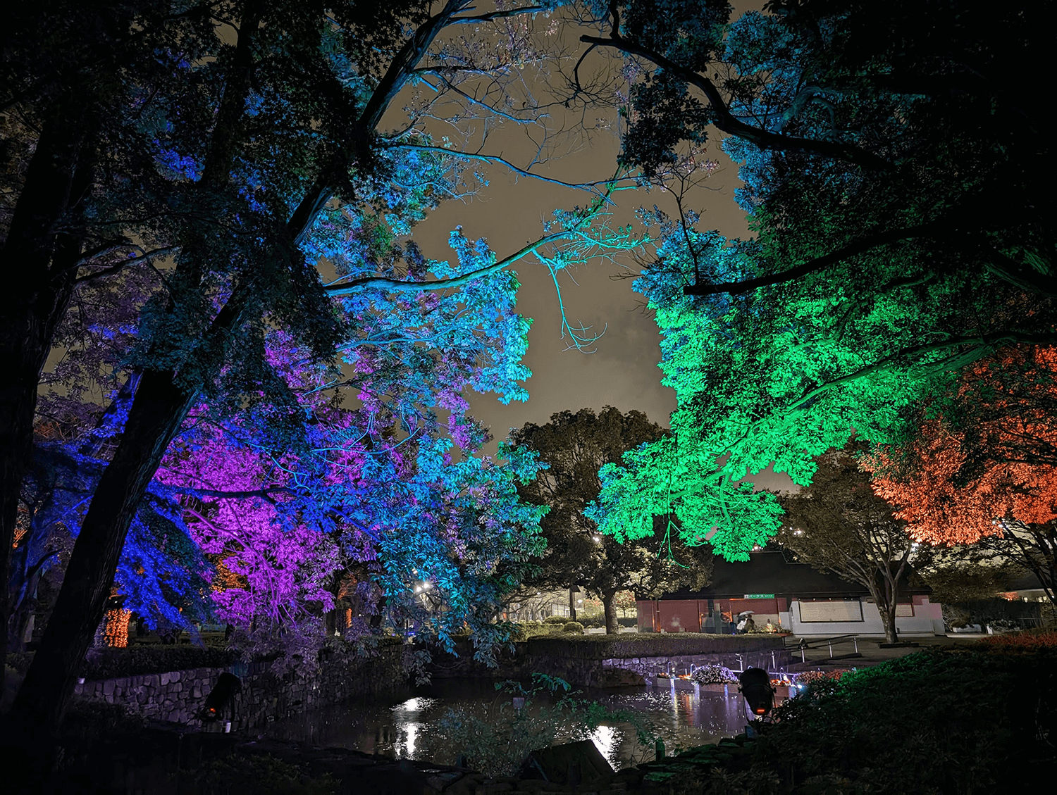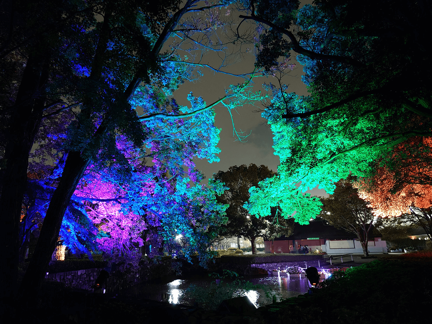 中心の塔はライトアップされている色が一定間隔で変わっているので機種の問題ではなく撮影したタイミングの問題のためご了承下さい。ただXperia 5Ⅴはちょっと白飛びみたくなっています。
