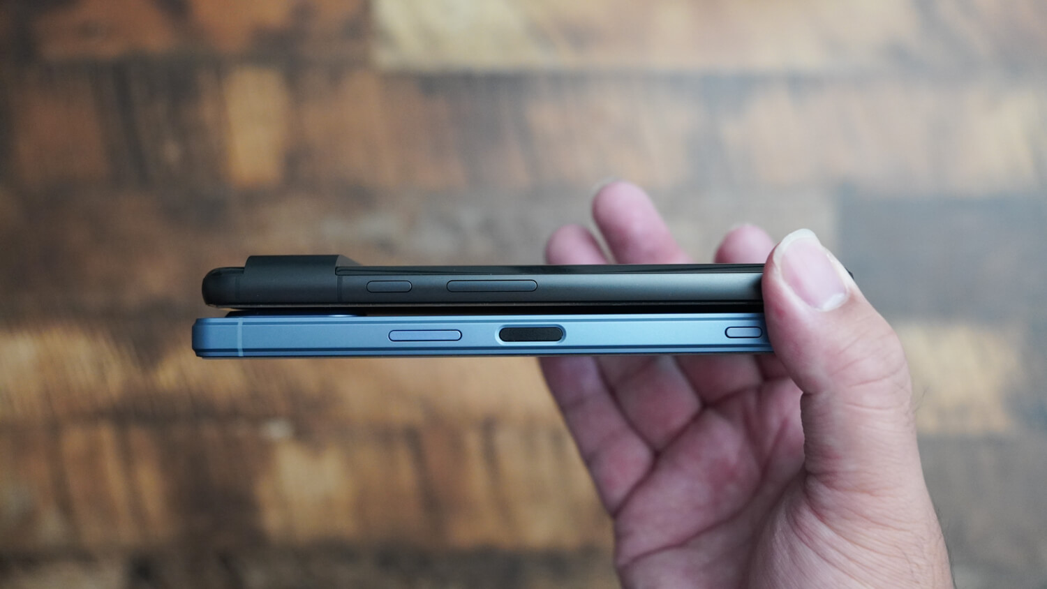 単純にPixel 8の方が横幅もあり重く分厚いからこそXperia 5Ⅴが持ちやすく感じるかも。やはり本体サイズの差があるからこそXperia 5Ⅴの方が取り回しがしやすい印象を受けます。