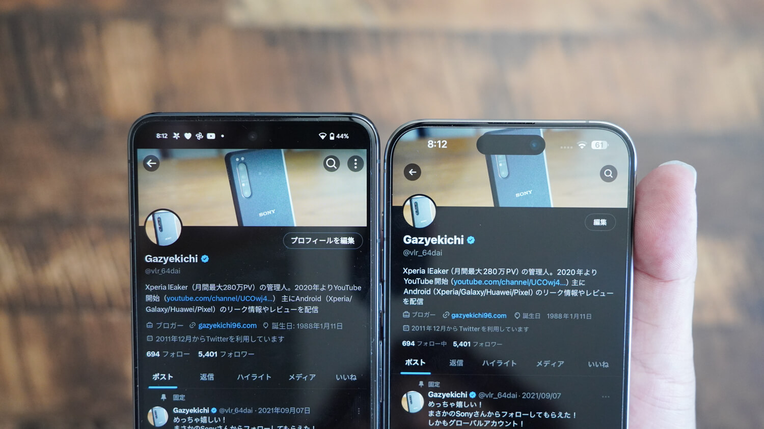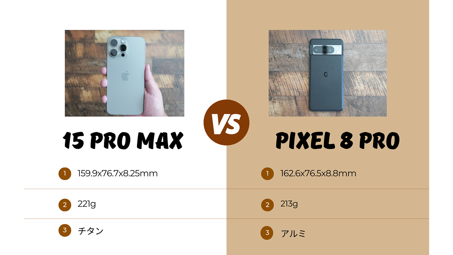 今回のサンプルはPixel 8 Pro/iPhone 15 Pro Maxの順番になっているので予めご了承下さい。