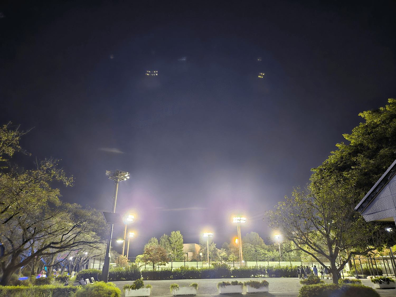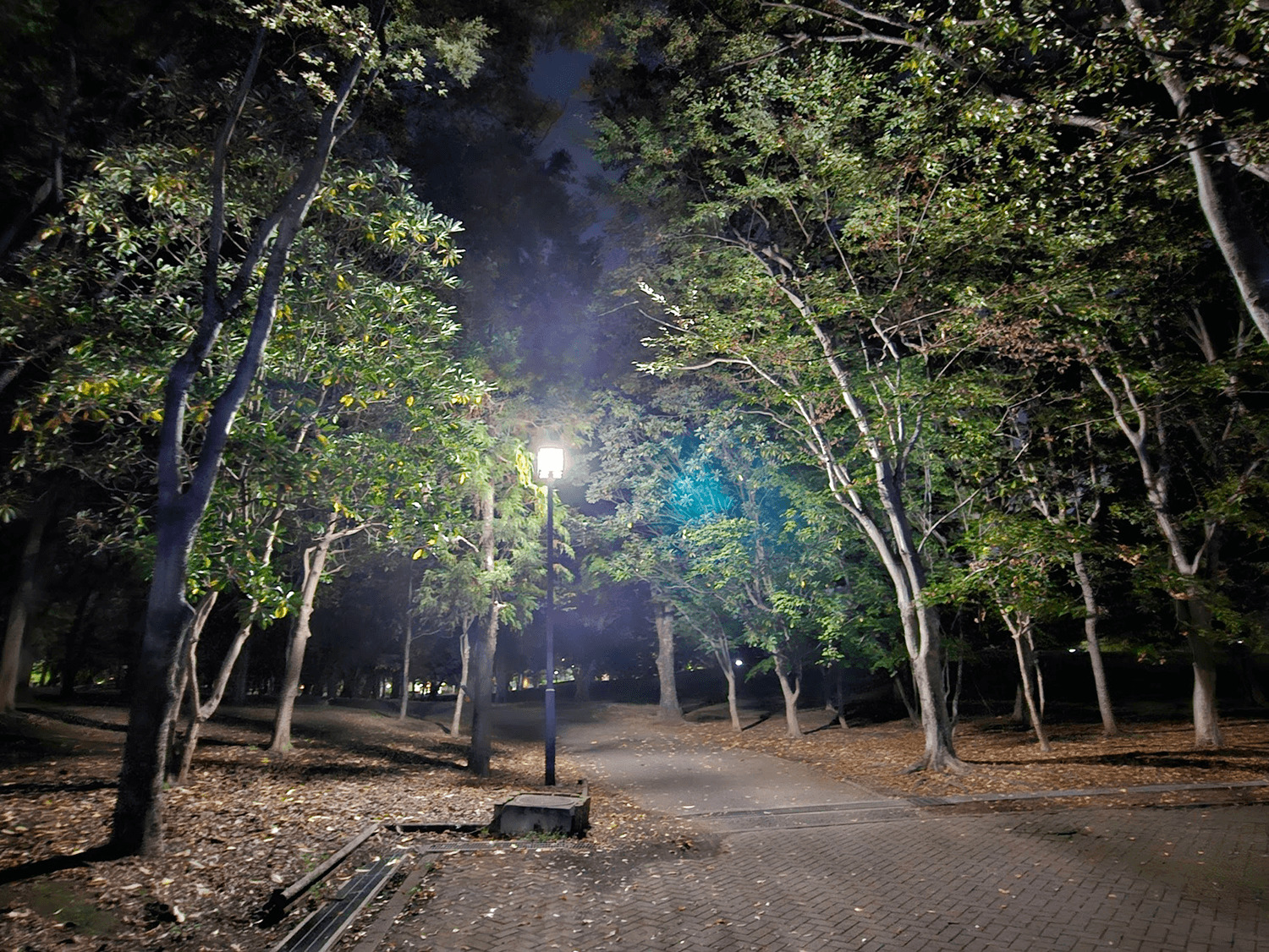 強い光源があるシーンで撮影してみましたが、Galaxy S23の方が白飛びとゴーストはまだマシですがフレアはちょっと酷目という感じに見えます。
