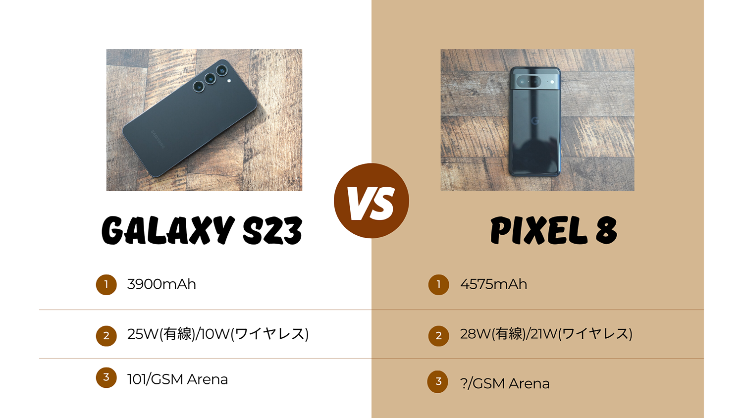 今回のサンプルはGalaxy S23/Pixel 8の順番となっているので予めご了承下さい。