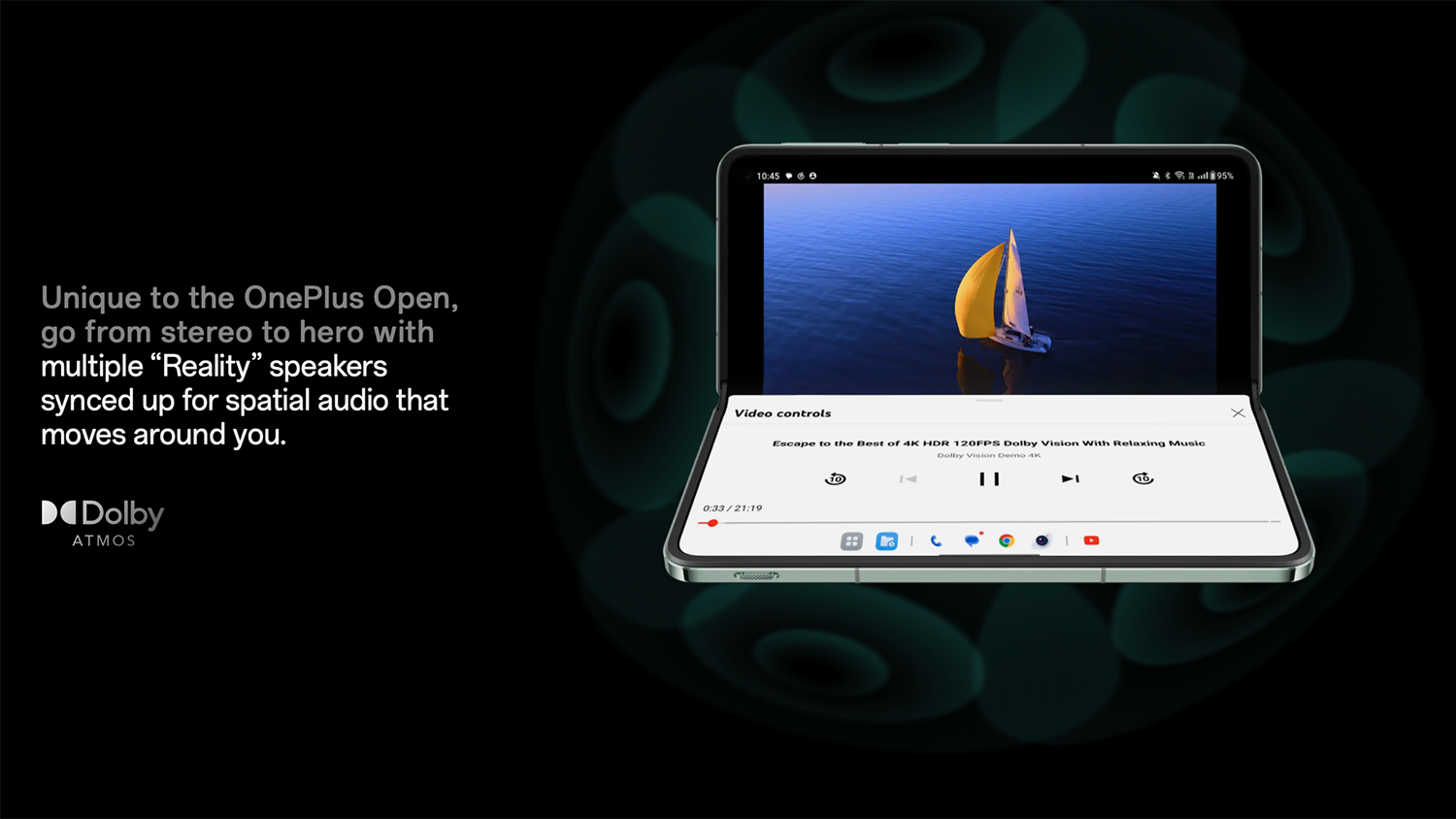 次に4つ目としてスピーカーで個人的にブック型の折畳式機種には頑張ってほしいところ。OnePlus Openは本体上部に2つのスピーカーが搭載され本体下部に1つと合計3つを搭載。
