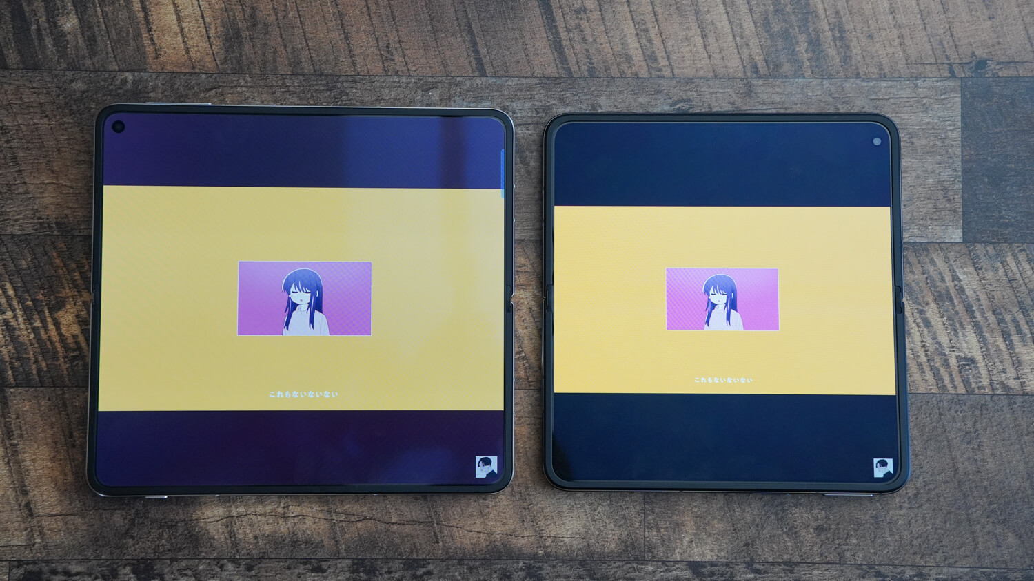 そして全画面表示にしてもOppo Find N2の方が黒帯が少なくコンテンツの大きさはほぼ一緒です。