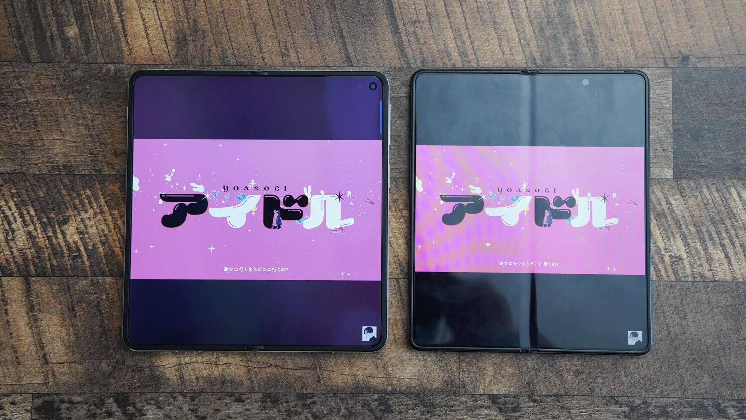 合わせてGalaxy Z Fold 5とも比較してみるとアスペクト比からもGalaxy Z Fold 5が縦長。ベゼルの太さなどはほぼ一緒ですがGalaxy Z Fold 5はUnder Display Cameraを採用。