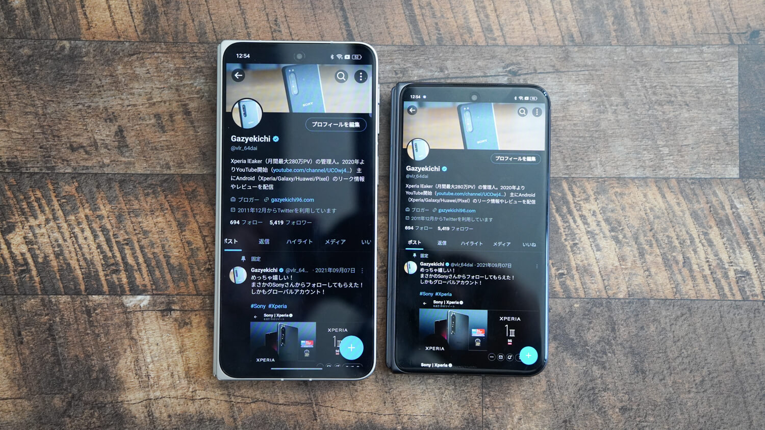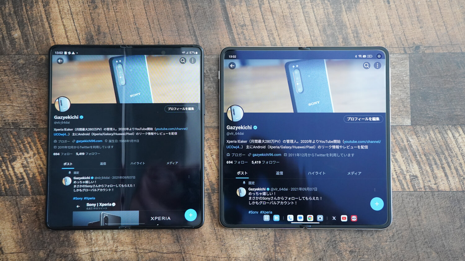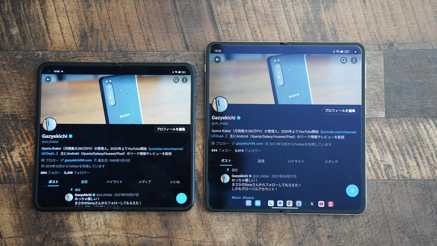 次にGalaxy Z Fold 5と比較してみましたが情報量はそこまで変わらずコンテンツの大きさに違い。