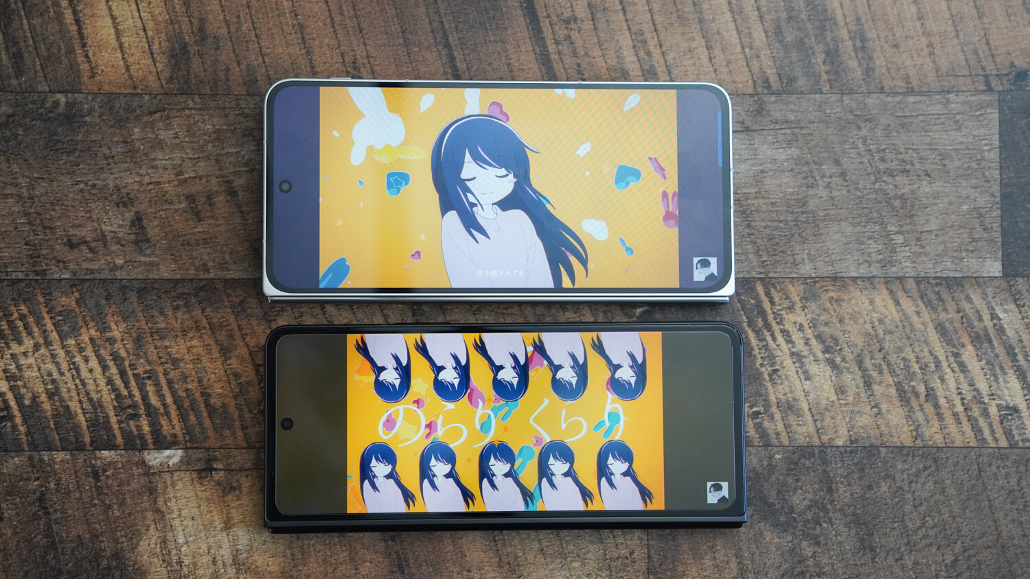 またGalaxy Z Fold 5と比較すると滑らかさがちょっと足りないかなという印象を受けます。とはいえ比較したらとの話で単体で見る限りは十分に快適なディスプレイだと思います。
