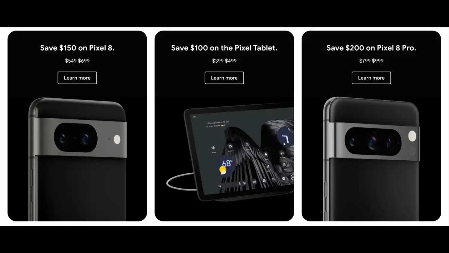 また日本と同様にブラックフライーデー対象製品の一部を明らかにしており、Pixel 8は$150の値引きでPixel 8 Proは$200の値引きで購入することが可能です。値引きが入ると前モデルより安くなるためお得感がかなり増します。