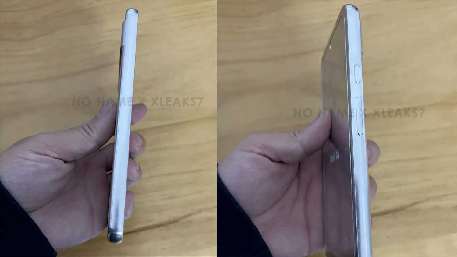 最後に側面を撮影した画像で左側面は何もありませんが製品版にはおそらくSIMトレイがあると思います。一方で右側面を確認すると音量ボタンに電源ボタンがあることを確認できます。