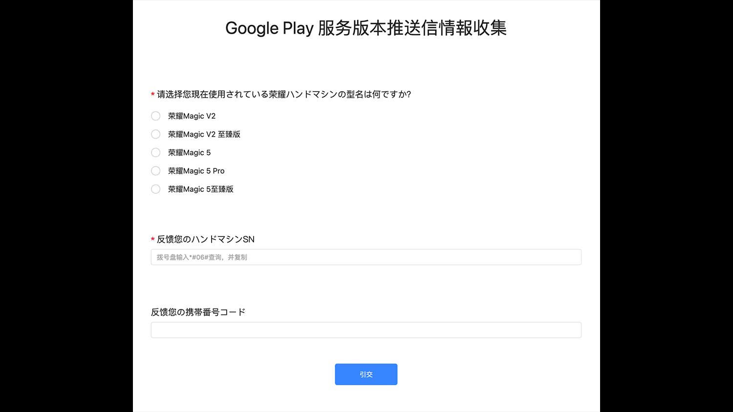 まずリンク先を確認すると上記の画像のようなページにとびます。ちなみに申請をできる機種は現時点で上記の5機種のみで今回はHonor Magic V2で申請してみました。