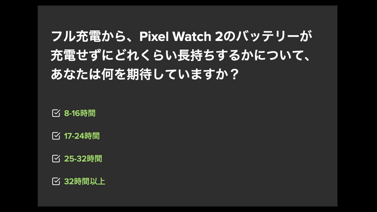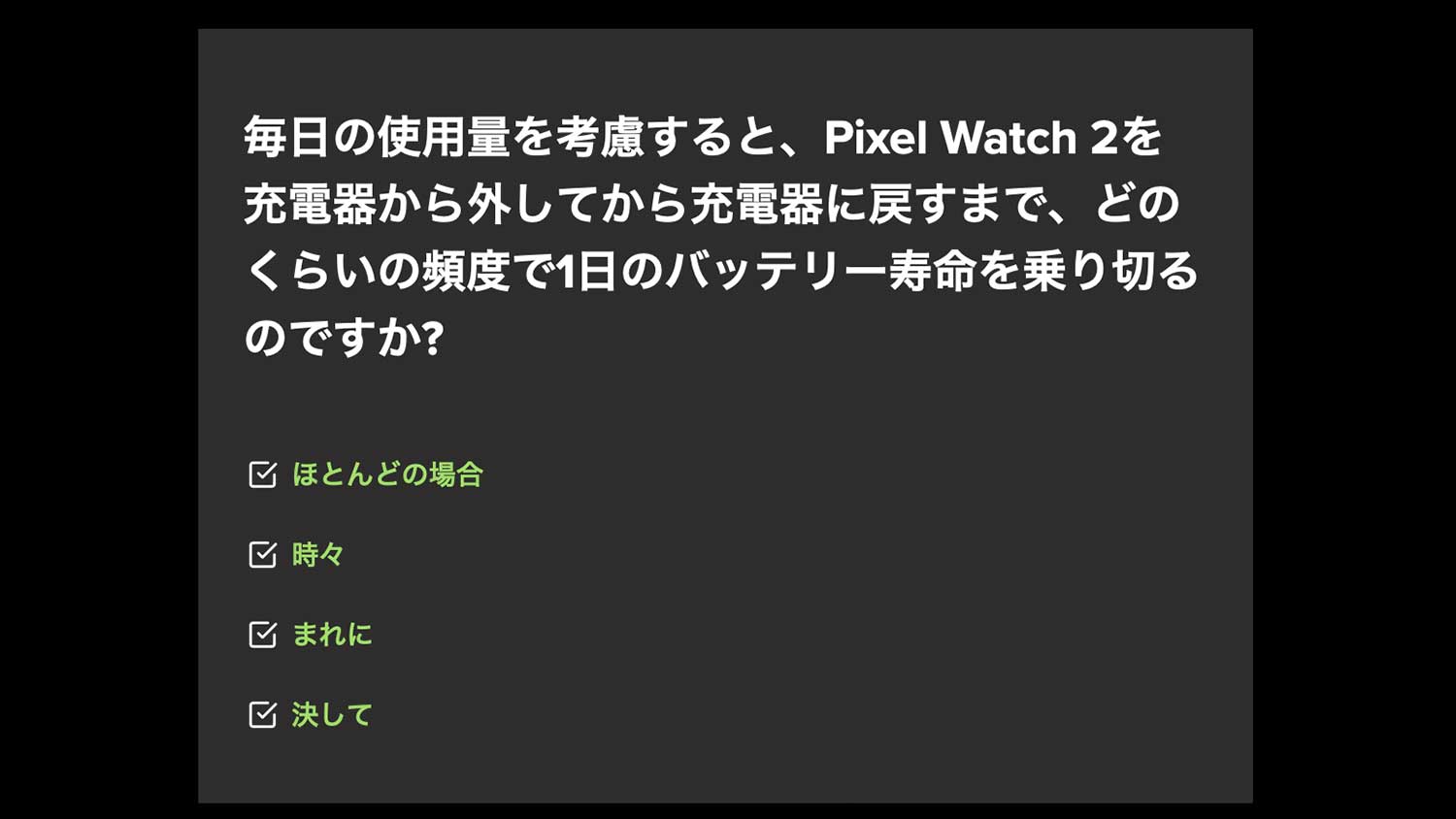 GoogleはPixel Watch 2の電池持ちは24時間としており、実際にユーザーは24時間充電なしでもっているのか調べているんだと思います。