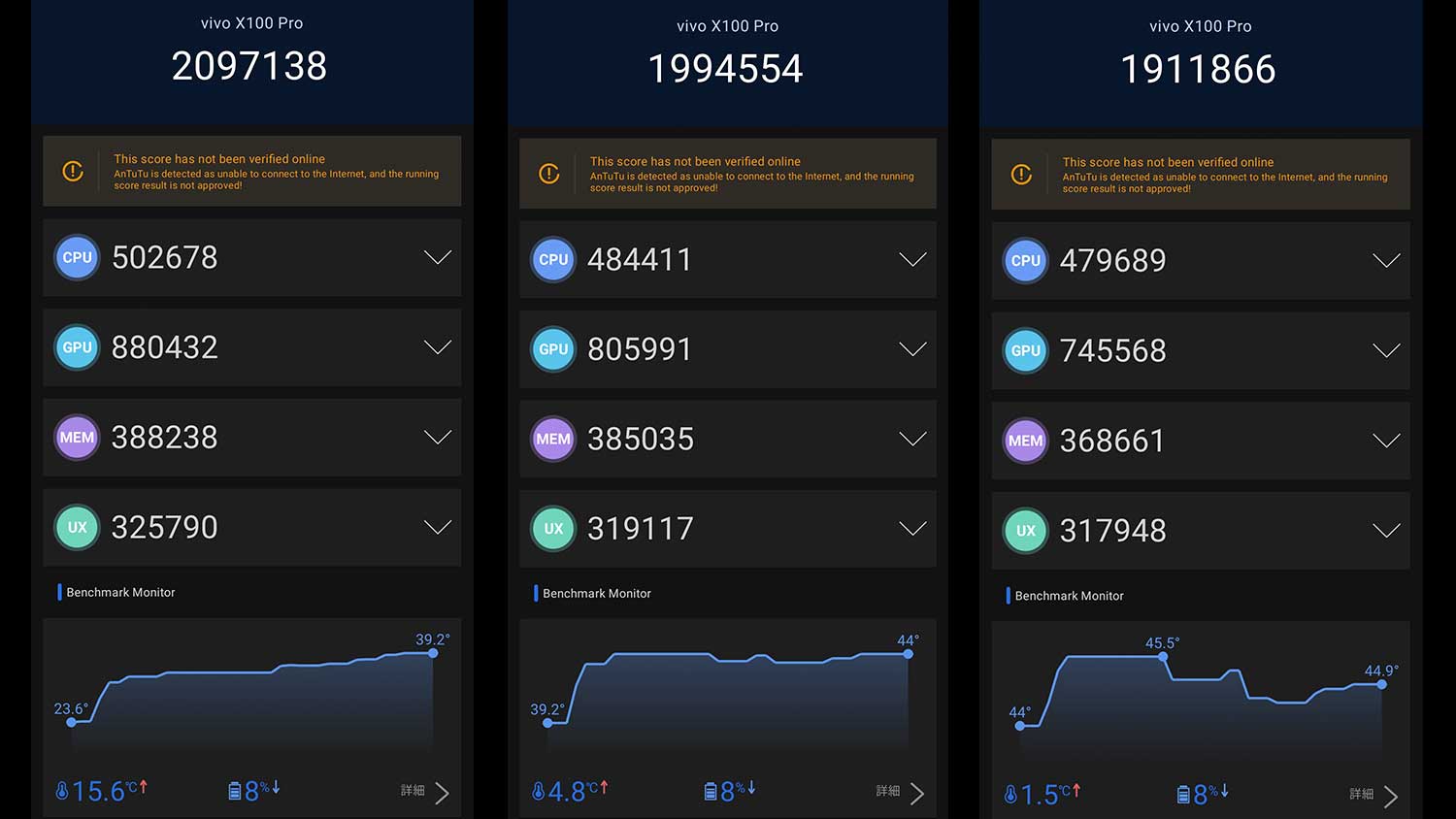 ちなみに夜8時間放置した時の消費電力は1%だったので安定している部類に入ると思います。vivo X90 Pro+やvivo X Fold 2は寝る前の電池残量が40%から50%の間だったのでvivo X100 Proは同じ大陸版でも電池持ちが大幅に改善していることをしっかり確認できる。
