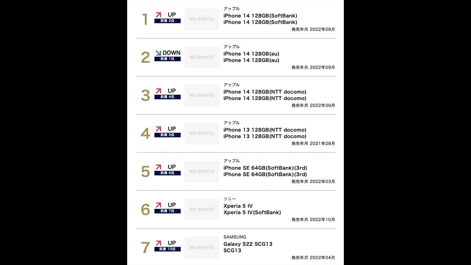 直近のBCNランキングをみるとiPhone 14やiPhone 13など型落ちとなってキャリアが大幅値引きしている機種が上位を占めていますが割引が規制されるためランキングも変わる可能性。