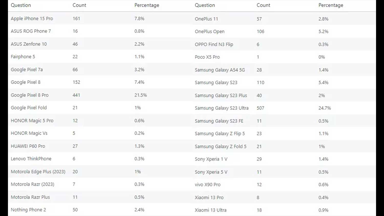 そして10月下旬より発売したばかりではありますがOnePlus Openもランクインしており、2024年に同様のアンケートを実施すれば後継機種が上位に残る可能性も十分に考えられます。