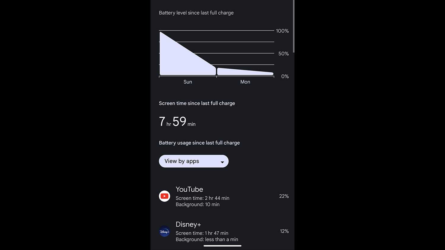 Android14にアップデートすることでバックグラウンド処理やアプリのキャッシュの処理が変更されたことからも電池持ちが改善がされることが判明しています。そして今回投稿されていた画像を見る限りスクリーンオンタイムが7時間59分というのはなかなか優秀に感じます。
