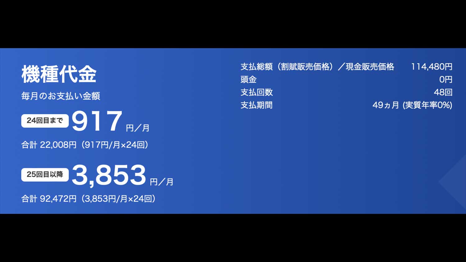 | iPhone 14(128GB) | 1円x12回 | 3209円x36回 |
