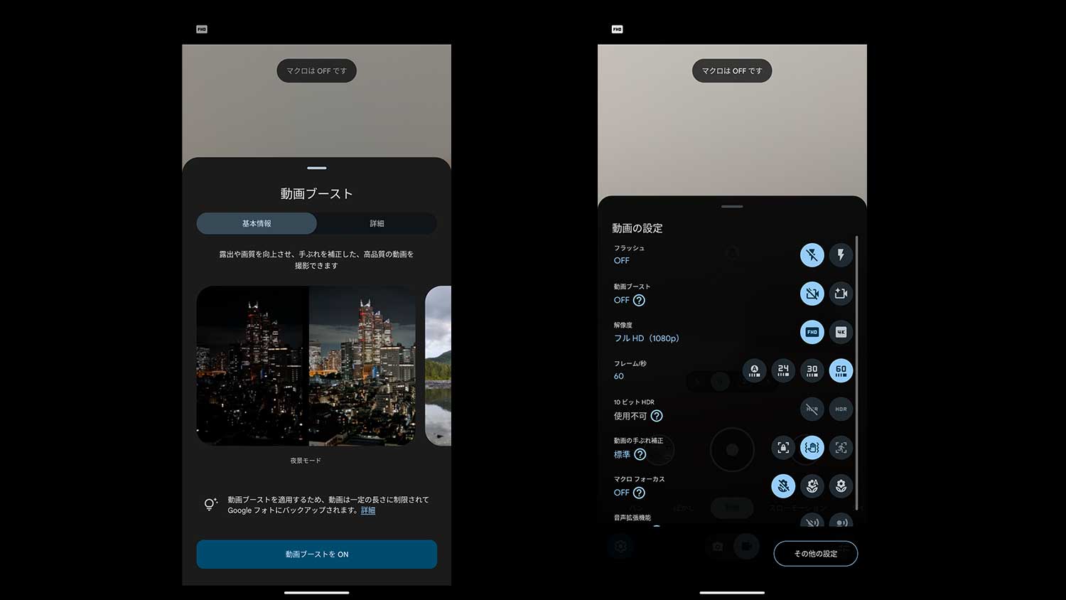 一つ目としてPixel 8 Pro専用ですが動画ブースト機能でGoogleのクラウドAIを利用して撮影した動画を自動編集してくれる機能。まず動画ブーストを使う上で確認したいこととして連続撮影時間は最大で10分までです。