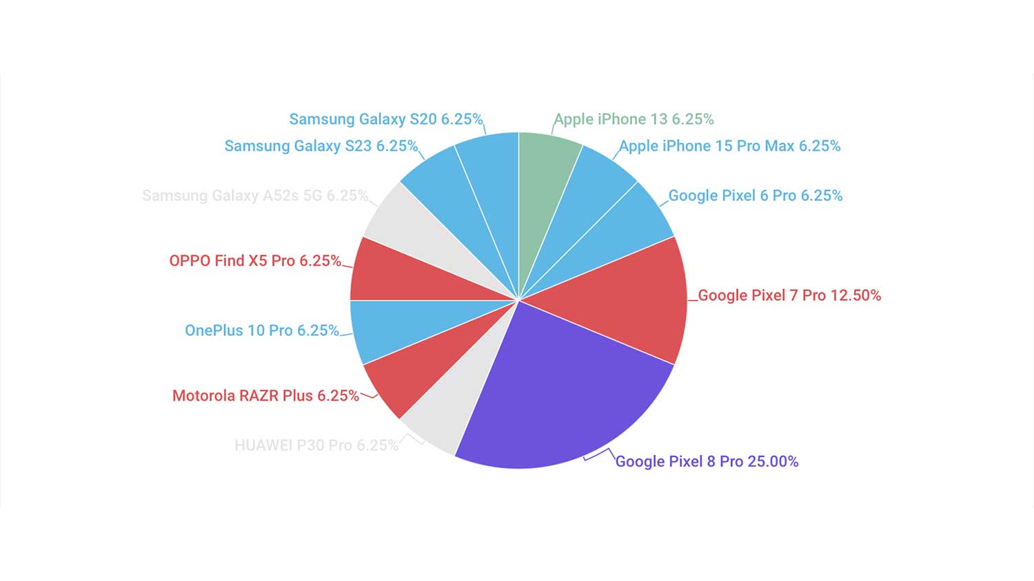 上記の画像からもPixel 8 Proを使っているユーザーが最も多く2番目に多いのがPixel 7 Proという結果になっています。興味深い部分としてPixel 8やPixel 7など無印が含まれていないことに加えPixel 7aなどの廉価モデルも含まれていないこと。