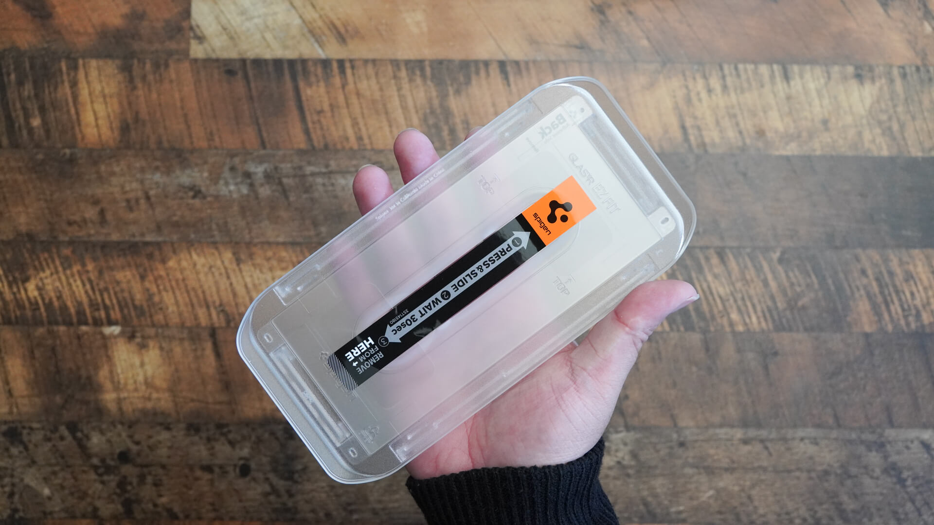 従来はEdgeディスプレイを採用していたので水貼りかつTPUであるNeo Flexでしたが今回からフラットディスプレイになったのでガラスフィルムと貼り付け用のガイド枠が一体化したEZ Fitになったので貼るのがめちゃくちゃ楽になりました。