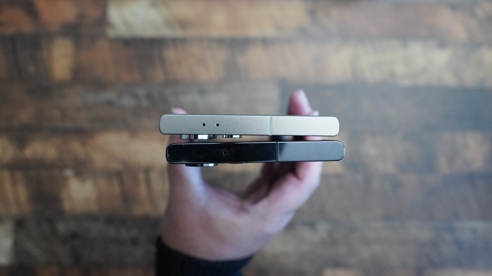そしてカメラ部分を比較するとカメラ自体はそこまで変わっている印象は受けずほぼ一緒です。ただカメラバンプ込みでみるとGalaxy S24 Ultraの方が1mm近く薄型化されている感じです。
