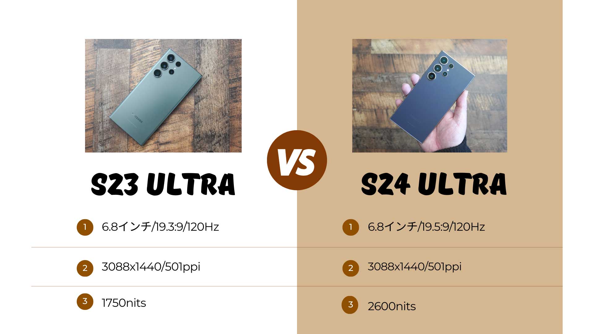 先ほどと同じくGalaxy S24 Ultra/Galaxy S23 Ultraの順番になっています。