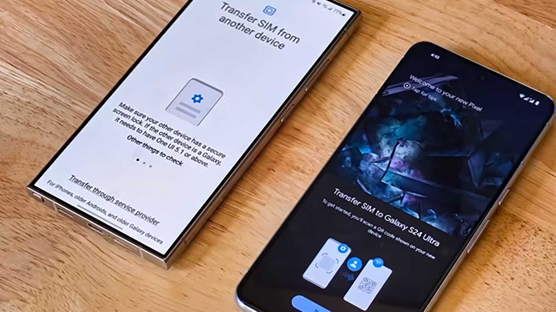 先日の情報からもAndroid 14 QPR 2のβ版においてPixelはeSIM転送機能を実装する準備が進んでいることが判明しています。ただ今回の情報によると、あるユーザーがGalaxy S24 Ultraのセットアップ中にeSIM転送機能を使おうとしたら近くにおいてあったLG V60 ThinQにポップアップが表示されたことが判明。