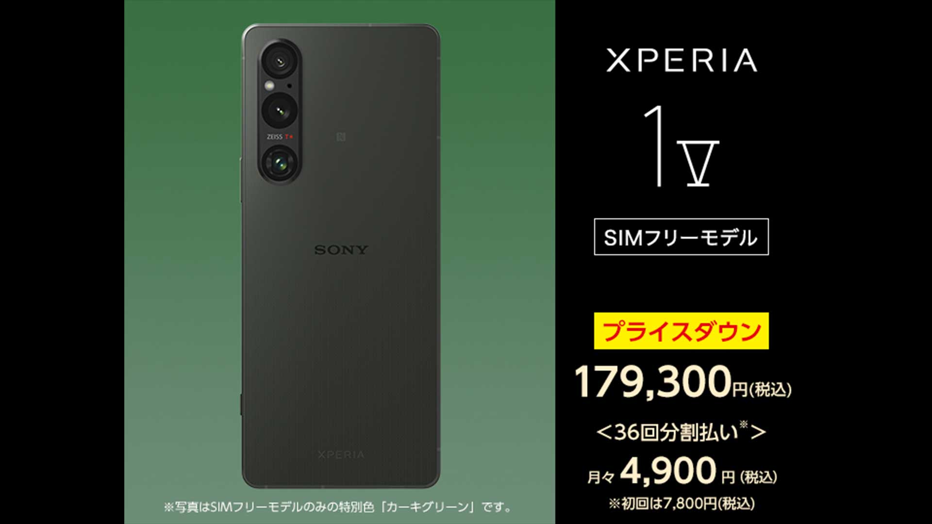 次に現状最新のプレミアムモデルであるXperia 1Ⅴも値下げされており今回1万5400円の値下げ。なので17万9300円と昨年の7月に発売されてから初めての価格改定という感じになります。