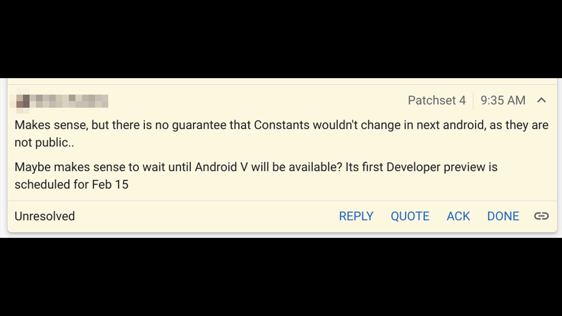 今回の投稿通りに進めばAndroid 15 Developer PreviewはAndroid 14 QPR3 Beta 1の僅か1週間後に配信を開始することになります。ちなみにAndroid 14 Developer Previewは2023年2月8日に配信を開始したので僅かに遅れ気味という感じです。