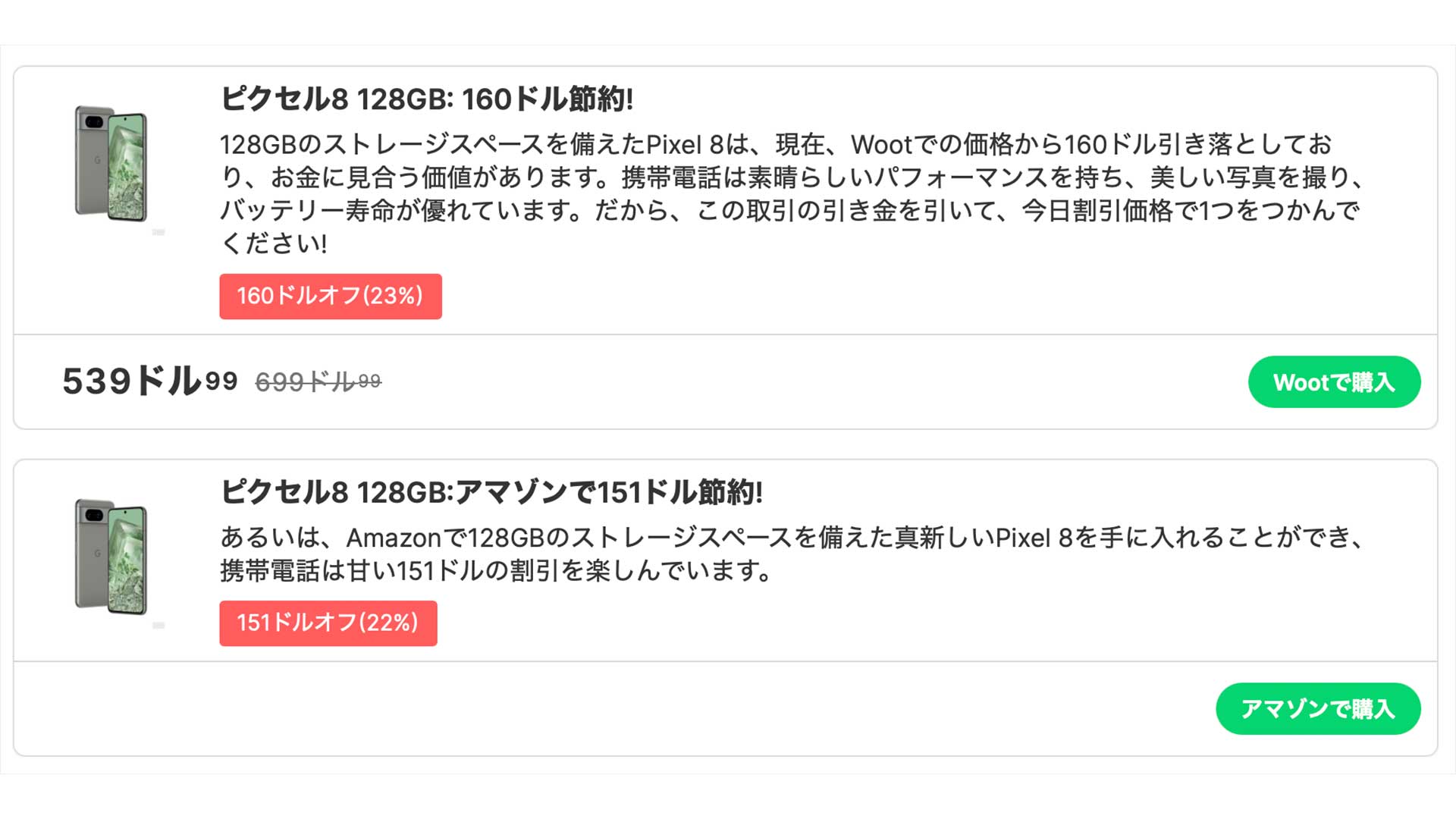 売上が芳しくないのか発売以降アメリカでGoogle Pixel 8シリーズは積極的に割引販売が行われています。ブラックフライデーなどホリデーシーズン向けに行われた時と同等の割引で年があけてからも購入可能。