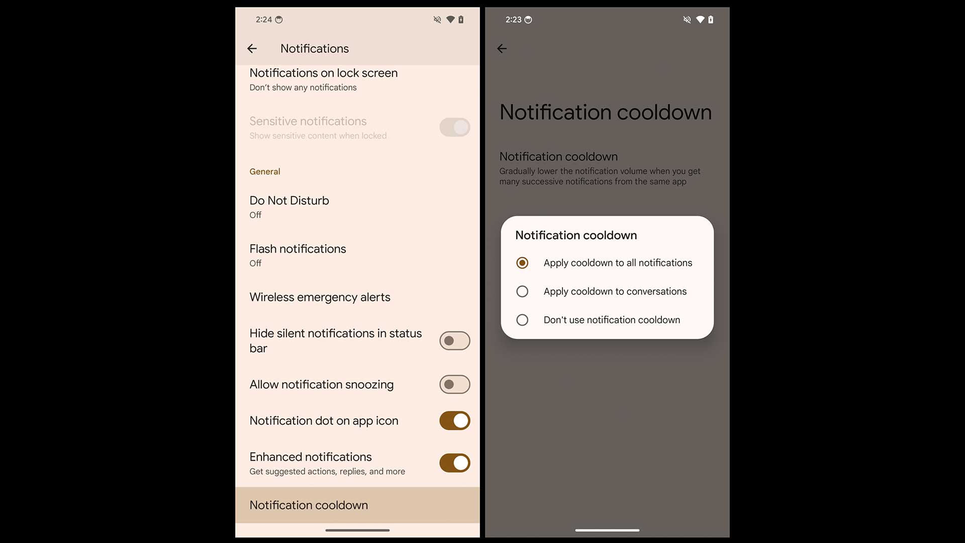 先日にGoogleはAndroid 15 Developer Previewの配信を開始しておりAndroid15の新機能が明らかになっています。そして今回の情報によると新機能として直訳で「通知クールダウン」が追加されることが判明したとしています。