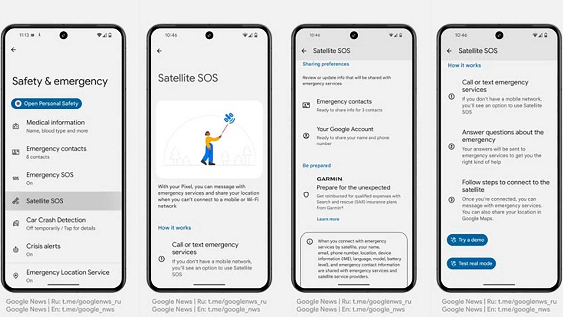 2022年にGoogleはAndroid14で衛星通信機能をサポートすることを明らかにしていましたが現時点でPixelの対応機種は存在せず。ただ今回アダプティブコネクティサービスのアップデートにおいてセルラー及びWi-Fiが利用出来ない時に衛星通信を利用して緊急メッセージを送信する「衛星SOS」機能を発見したとしています。