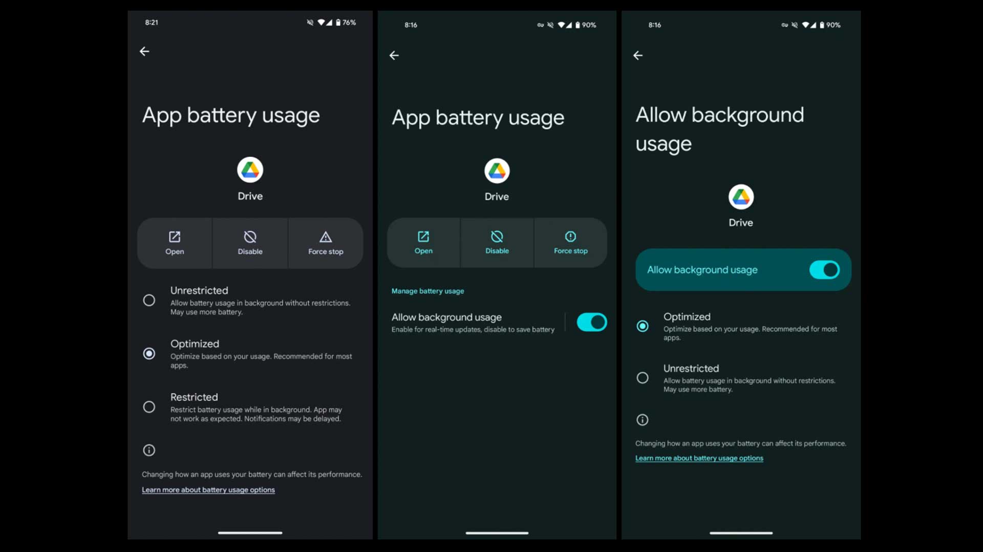 従来は無制限/最適化/制限付きの3つのオプションから選択することができましたがAndroid14 QPR 2では変更に。