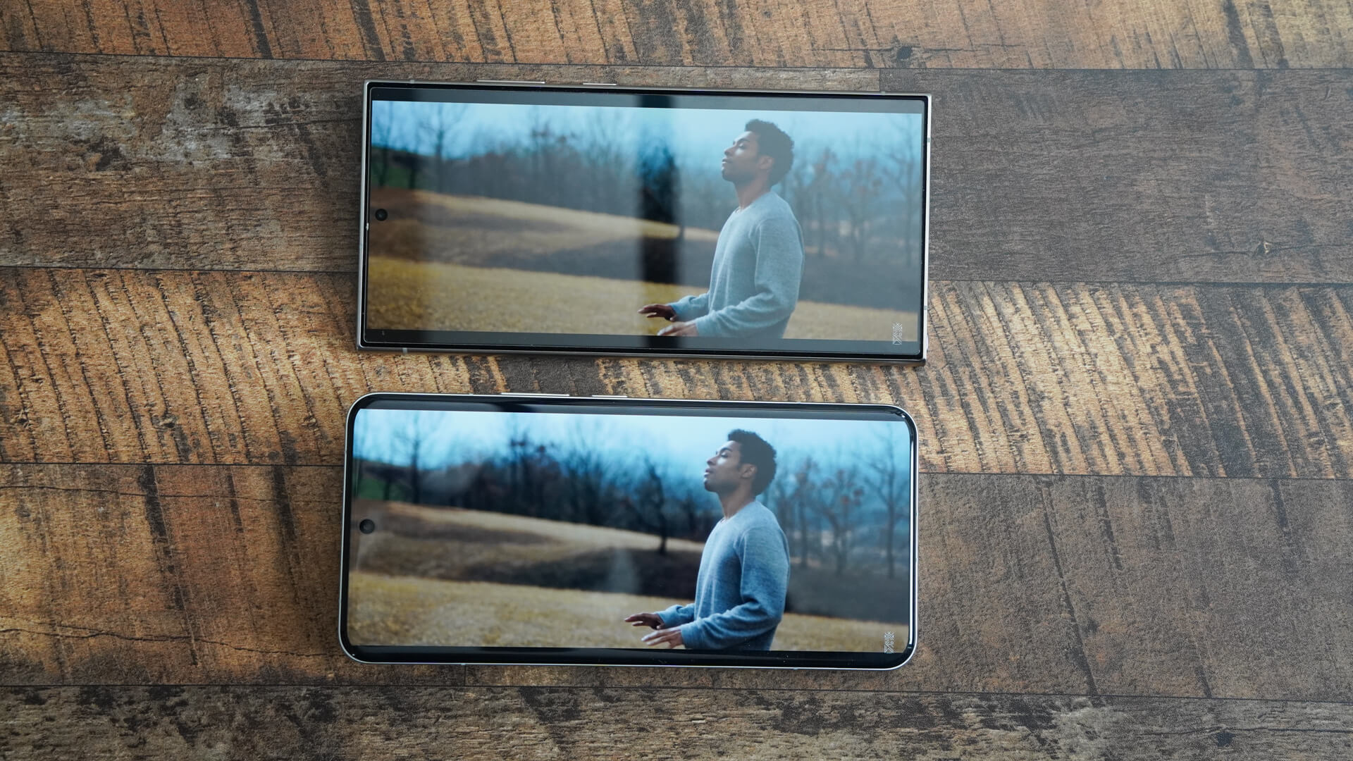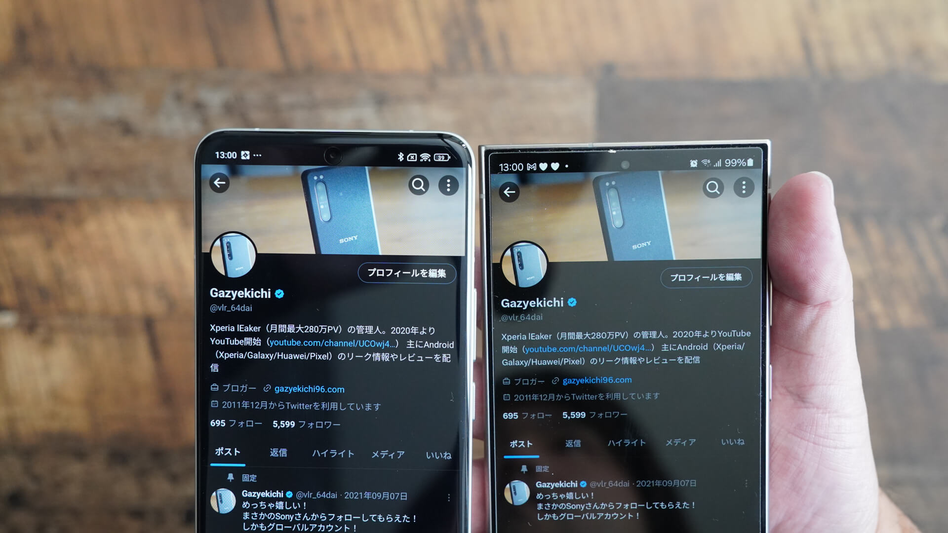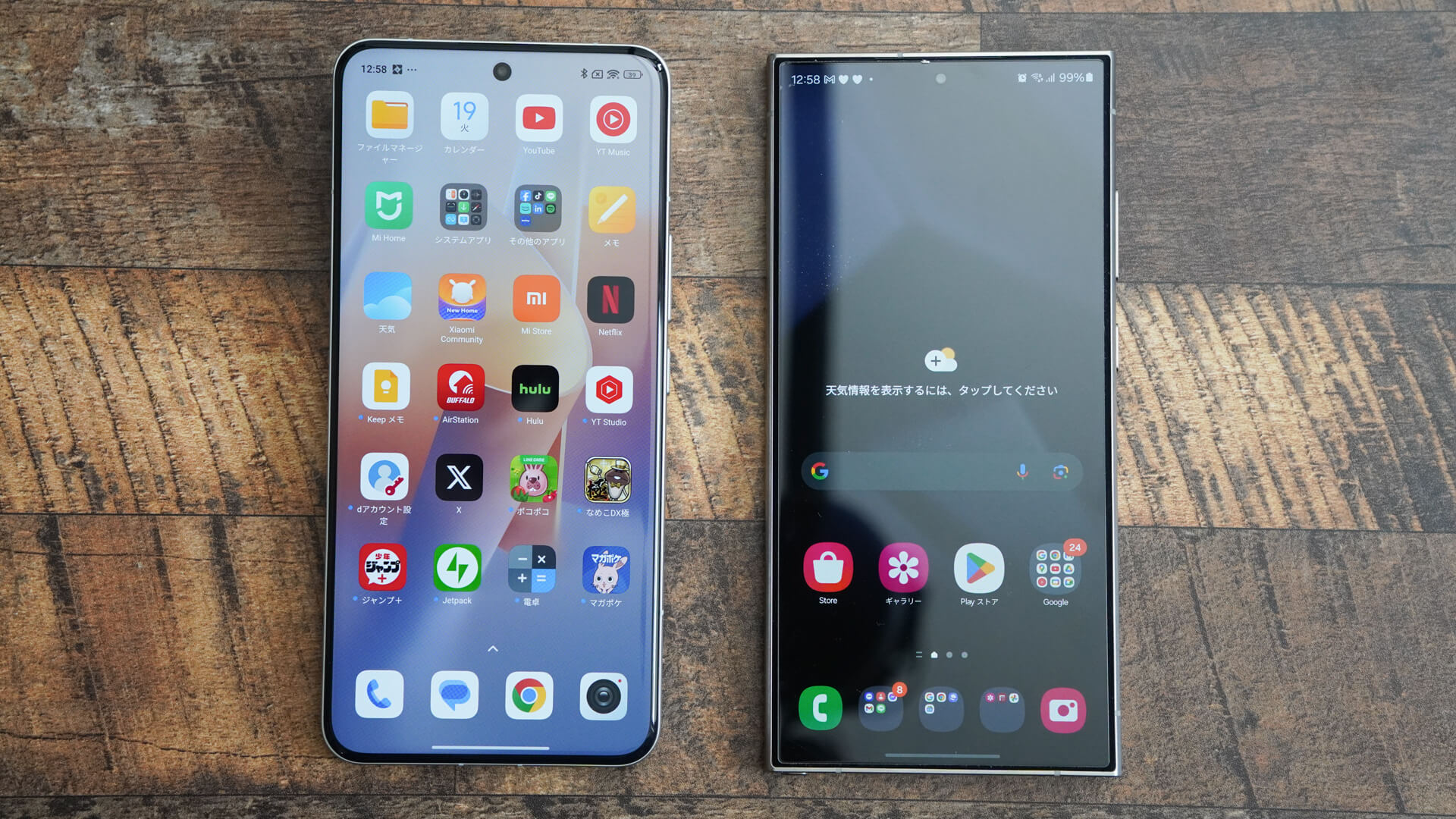 あとはXGalaxy S24 Ultraの方が横幅があるためコンテンツは僅かに大きく表示される。ディスプレイ全体で見た時にGalaxy S24 Ultraの方が明るくて大きくて見やすいと分かりやすい。