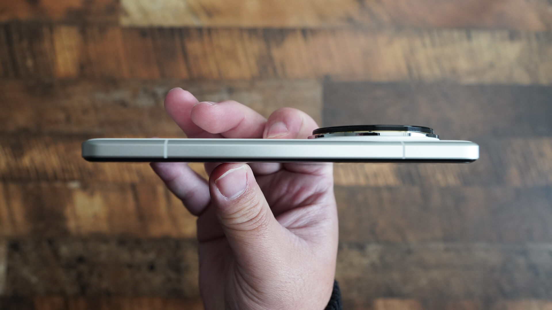 Xiaomi 14 Ultraは前モデル対比でフラットディスプレイに近いデザインを採用しています。そのためサイドフレームもそれなりに厚みのあるデザインに変更されましたがマット仕上げを採用。