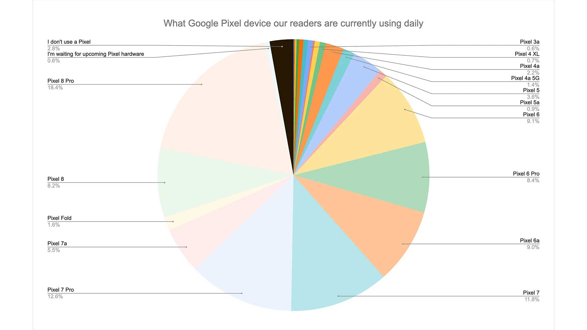 その上で最も人気があるのがPixel 8 Proで全体の18.4%と妥当な結果に感じます。やはりこの手のアンケートに投票する人は最新機種かつ最上位機種に興味を持ちやすいです。