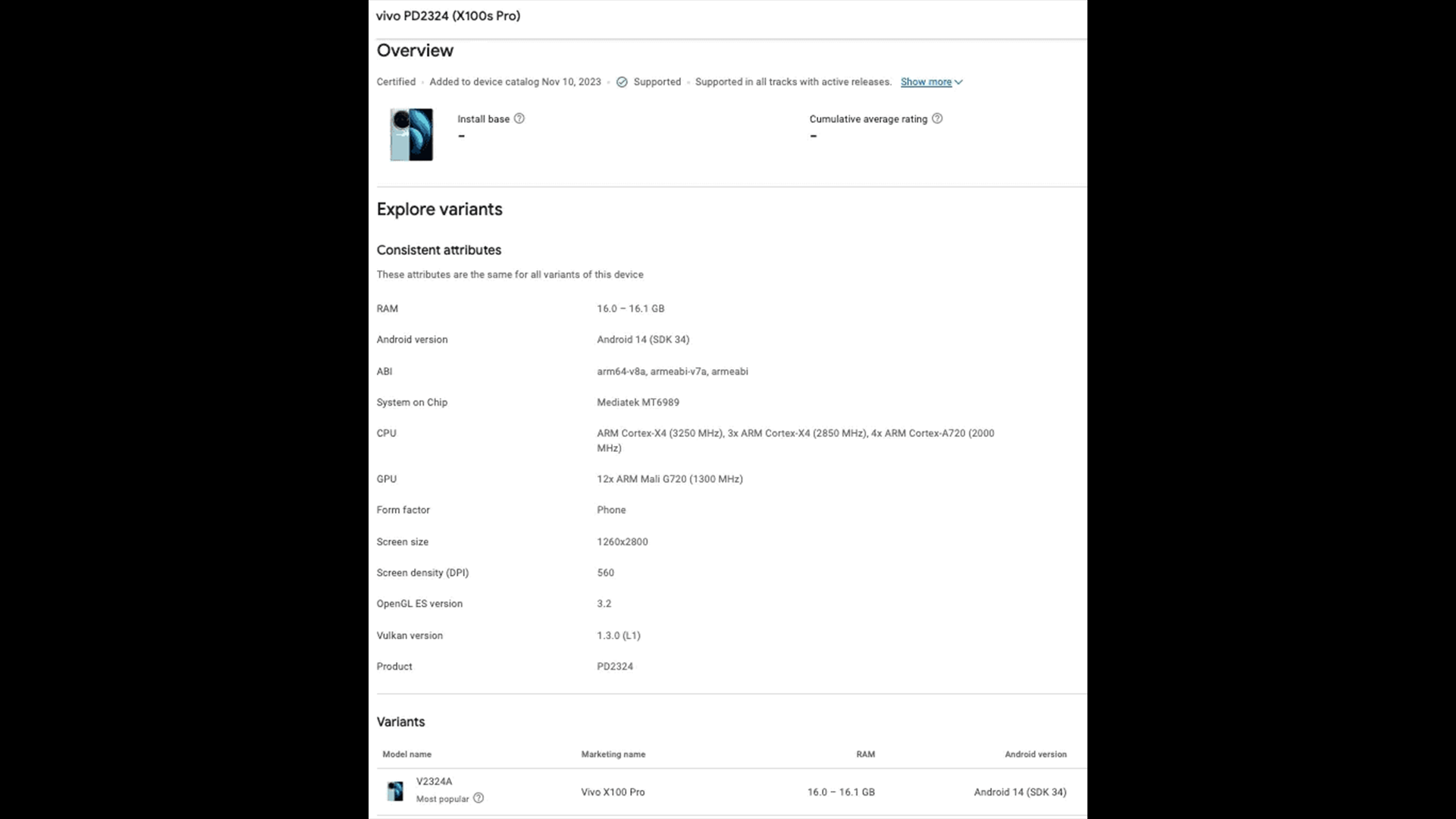 今回の情報によると5月に正式発表が予測されているvivo X100S ProがGoogle Play consoleのリストに追加されていることが判明したとしています。また合わせて一部スペックを確認することができ大きな特徴になるのがDimensity9300+を搭載している可能性があること。