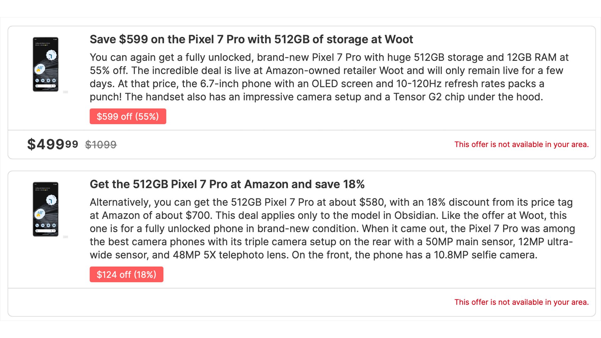 今回Phone Arenaによると米WootでPixel 7 Proの大容量モデルがついに半額以下になったと報告しているのでまとめたいと思います。
