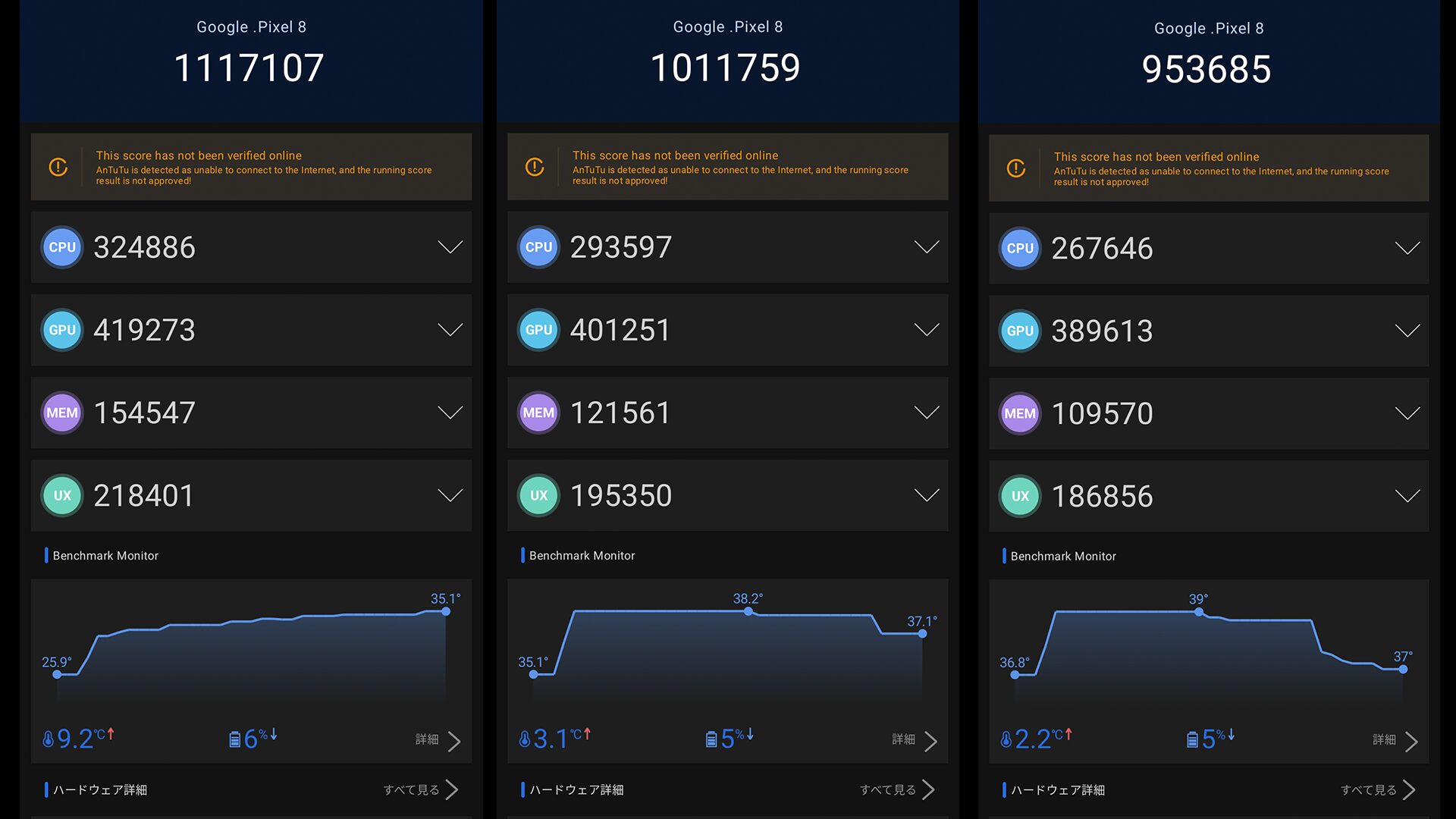 そして共通してGoogle Tensor G3を搭載しておりベンチマークを3回連続で回してみました。