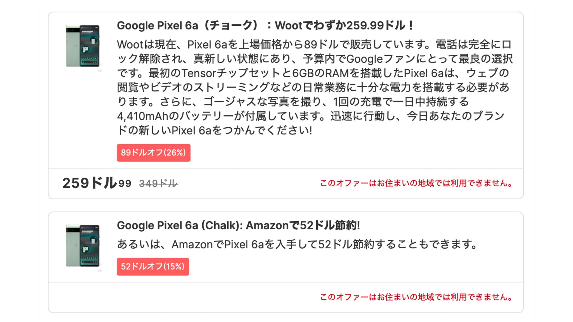 一方で数日使った感じだと目立った特徴もないけど大きな不満もなく中価格帯の機種であることを考えるとコスパはかなり優れているという印象。今回Phone ArenaによるとGoogle Pixel 6aが大幅値引きで販売されていることに言及しているのでまとめたいと思います。
